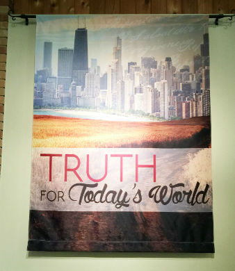 Installation: Fabric banners are incredibly versatile and can be installed in a variety of ways. Use cords, strings or bungees to attach the corner grommets to a stationary object, such as poles. The fabric is light enough to be hung using rope or ribbon for a more aesthetically pleasing look. You can also use screws and washers to install your banners to rigid backgrounds such as wood, walls, or concrete. Signs.com also offers pole pockets on the top and bottom of your fabric banner, making them easily usable in displays or booths. Extended outdoor use is not recommended for fabric banners because of their sensitivity to weather elements.